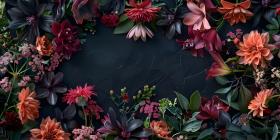 Flowers composition, Frame made of beautiful flowers on black background - Ai Generated