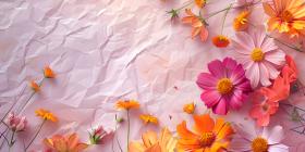 Colorful flowers on the old paper background with space for text - Ai Generated