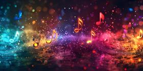 Colorful music notes background with space for your text, Musical Background - Ai Generated