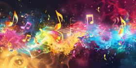 Colorful music notes background with space for your text, Musical Background - Ai Generated