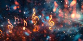 Colorful music notes background with space for your text, Musical Background - Ai Generated