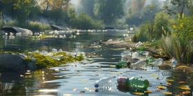 Environmental pollution concept Background, Pollution of the environment, Garbage in the river - Ai Generated
