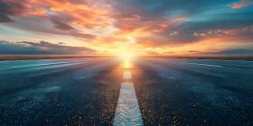 Asphalt road in the evening with a beautiful sunset - Ai Generated