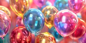 Colorful balloons background, Bunch of colorful balloons flying in the air - Ai Generated