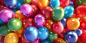 Colorful balloons background, Bunch of colorful balloons flying in the air - Ai Generated