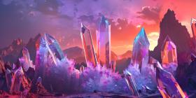Fantasy alien planet, Mountain and nebula, Gemstone Background - Ai Generated