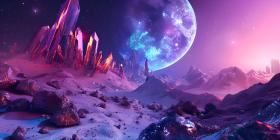 Fantasy alien planet, Mountain and nebula, Gemstone Background - Ai Generated