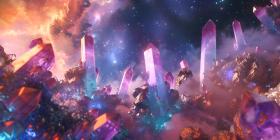 Fantasy alien planet, Mountain and nebula, Gemstone Background - Ai Generated