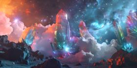 Fantasy alien planet, Mountain and nebula, Gemstone Background - Ai Generated