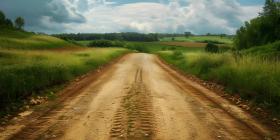 Panoramic view of a dirt road through a field in summer - Ai Generated