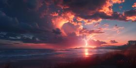 Fiery thunderstorm in the night sky over the forest, Storm on the sea, Stormy sky - Ai Generated