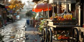 3d rendering of a street food cart with fruits and vegetables, Street stall with fresh fruits - Ai Generated