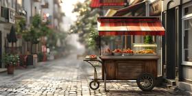 3d rendering of a street food cart with fruits and vegetables, Street stall with fresh fruits - Ai Generated