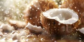 Coconut with water splashes on bokeh background, Coconut Background - Ai Generated