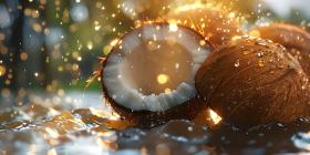 Coconut with water splashes on bokeh background, Coconut Background - Ai Generated