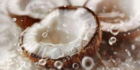 Coconut with water splashes on bokeh background, Coconut Background - Ai Generated