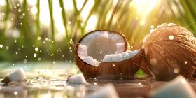 Coconut with water splashes on bokeh background, Coconut Background - Ai Generated