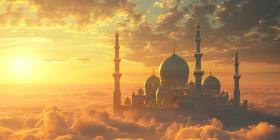 Mosque on the clouds in the sunset, Beautiful mosque in the clouds - Ai Generated