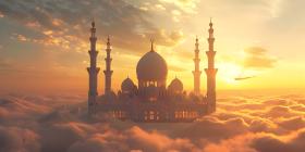 Mosque on the clouds in the sunset, Beautiful mosque in the clouds - Ai Generated