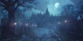 Halloween background with haunted house and full moon, Horror House - Ai Generated
