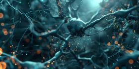 3d rendering of neuron cells in the brain. Medical science background - Ai Generated