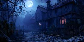 Halloween background with haunted house and full moon, Horror House - Ai Generated