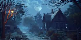 Halloween background with haunted house and full moon, Horror House - Ai Generated