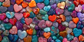Colorful hearts on a white background, Valentine's Day background - Ai Generated