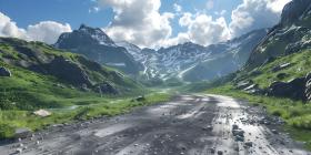 Mountain landscape with a road in the foreground, Asphalt road in the mountains - Ai Generated