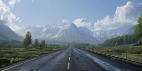 Mountain landscape with a road in the foreground, Asphalt road in the mountains - Ai Generated