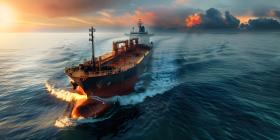Cargo ship sailing in the sea at sunset. Large cargo ship sailing in the sea - Ai Generated