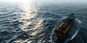 Cargo ship sailing in the sea at sunset. Large cargo ship sailing in the sea - Ai Generated