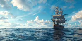 Cargo ship sailing in the sea at sunset. Large cargo ship sailing in the sea - Ai Generated