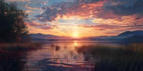 Beautiful sunset on the lake, Sunset Background, Sunset Over Ocean - Ai Generated