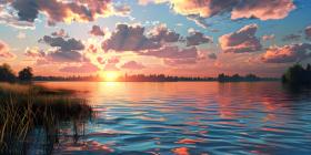 Beautiful sunset on the lake, Sunset Background, Sunset Over Ocean - Ai Generated