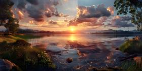 Beautiful sunset on the lake, Sunset Background, Sunset Over Ocean - Ai Generated