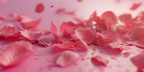 Scattered pink rose petals on a soft solid background - Ai Generated
