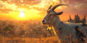 Eid al-Adha Goat Silhouetted at Sunset Background, Sunset Celebration of Eid al-Adha with Goat - Ai Generated