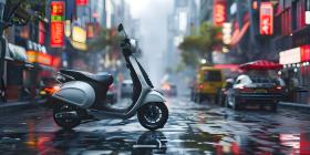 Urban Commuting: Electric Scooter in Cityscape, Modern Mobility: Electric Scooter on Urban Street - Ai Generated