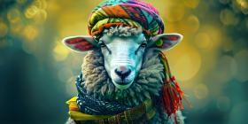 Colorful Trendy sheep wearing muslim cap eid ul adha - Ai Generated