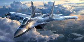 Skyward Soar: Fighter Jet in Flight Background, Aerial Dominance: Fighter Jet Soaring Above - Ai Generated