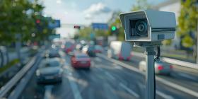 Radar speed control camera on the road with blurred Background - Ai Generated