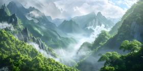 Panoramic view of misty mountains and lush green valleys - Ai Generated
