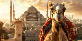 Eid ul-Adha Greetings: Camel and Mosque, Eid ul-Adha Celebration: Camel Against Mosque Backdrop - Ai Generated
