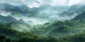 Panoramic view of misty mountains and lush green valleys - Ai Generated