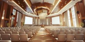 Elegant Conference Room Interior, Sophisticated Meeting Hall Setting, Stunning Venue for Conferences - Ai Generated