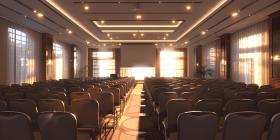 Elegant Conference Room Interior, Sophisticated Meeting Hall Setting, Stunning Venue for Conferences - Ai Generated