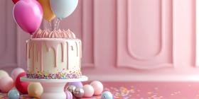 Birthday party balloons with cake with copy space for text - Ai Generated