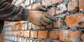 Bricklayer worker installing brick masonry on exterior wall background - Ai Generated