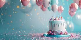 Birthday party balloons with cake with copy space for text - Ai Generated